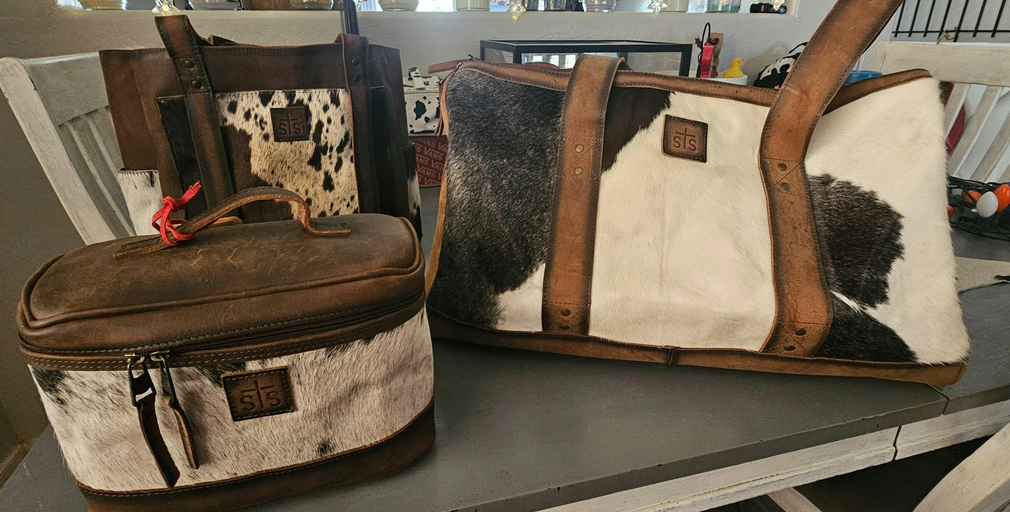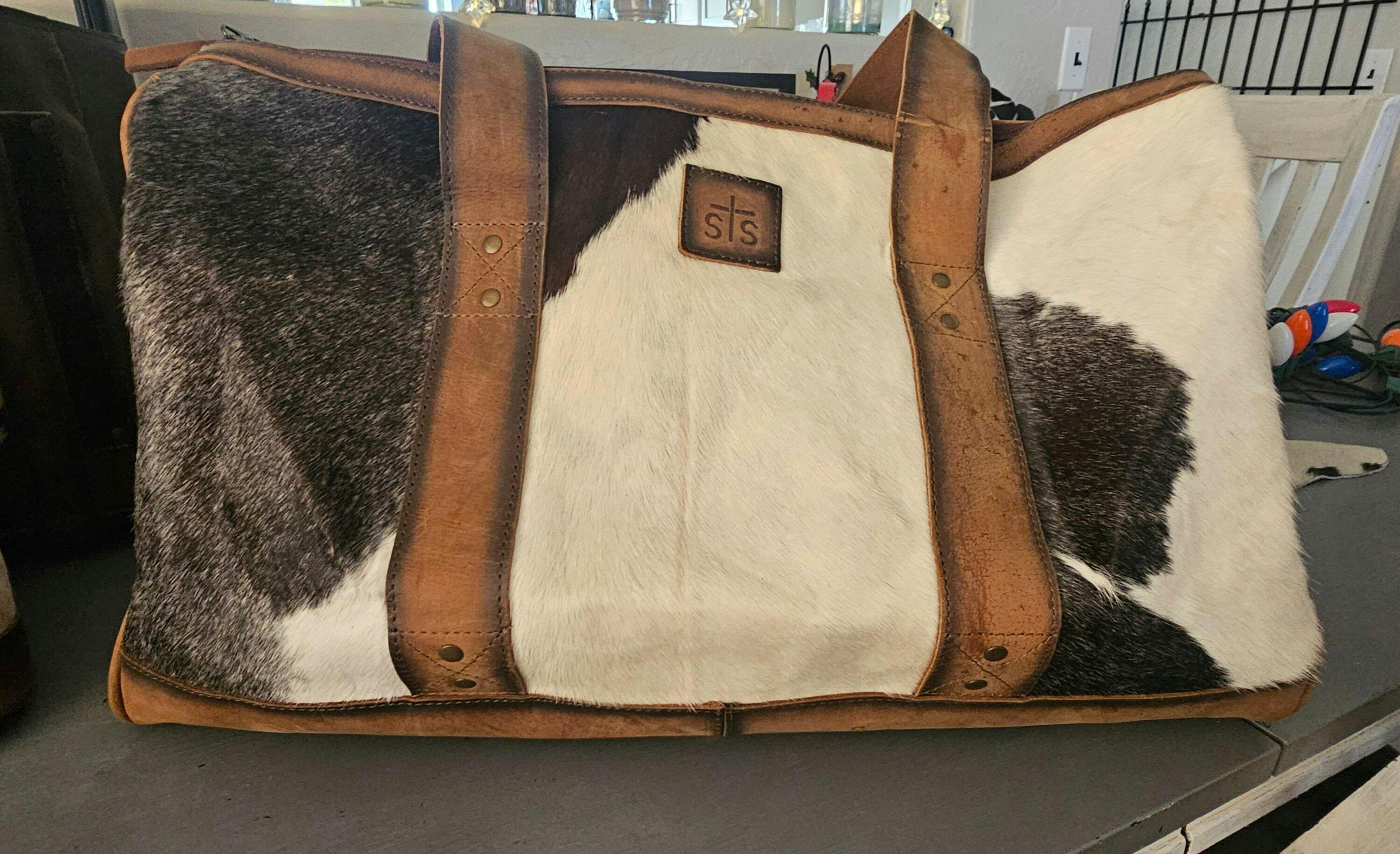 The Cowhide Saltillo Duffle is made from hand selected hair on hide with genuine full grain leather accents.