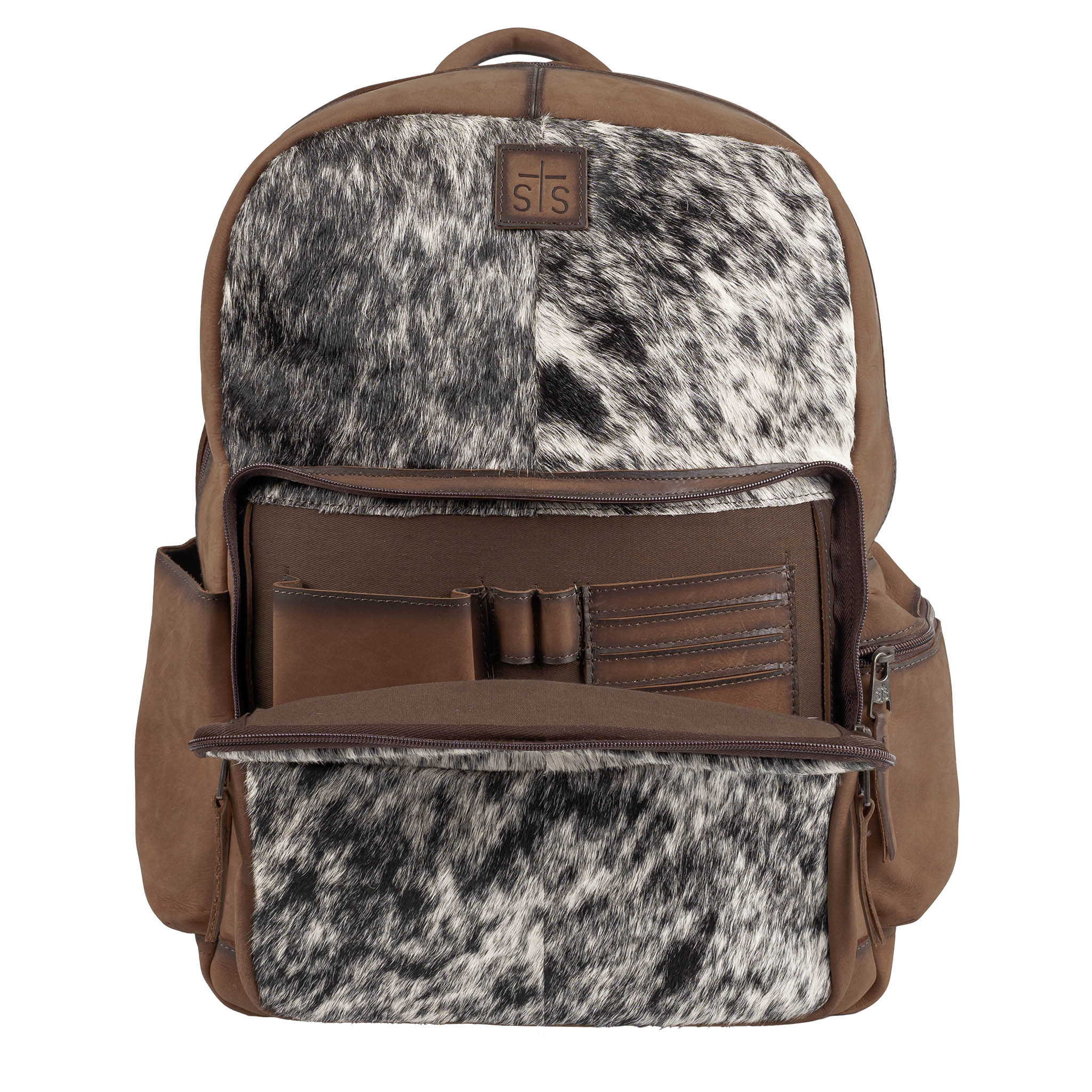Add a touch of western flair to your getup with the Cowhide Whitness Backpack that is made from hand selected hair on hide with genuine full grain leather.