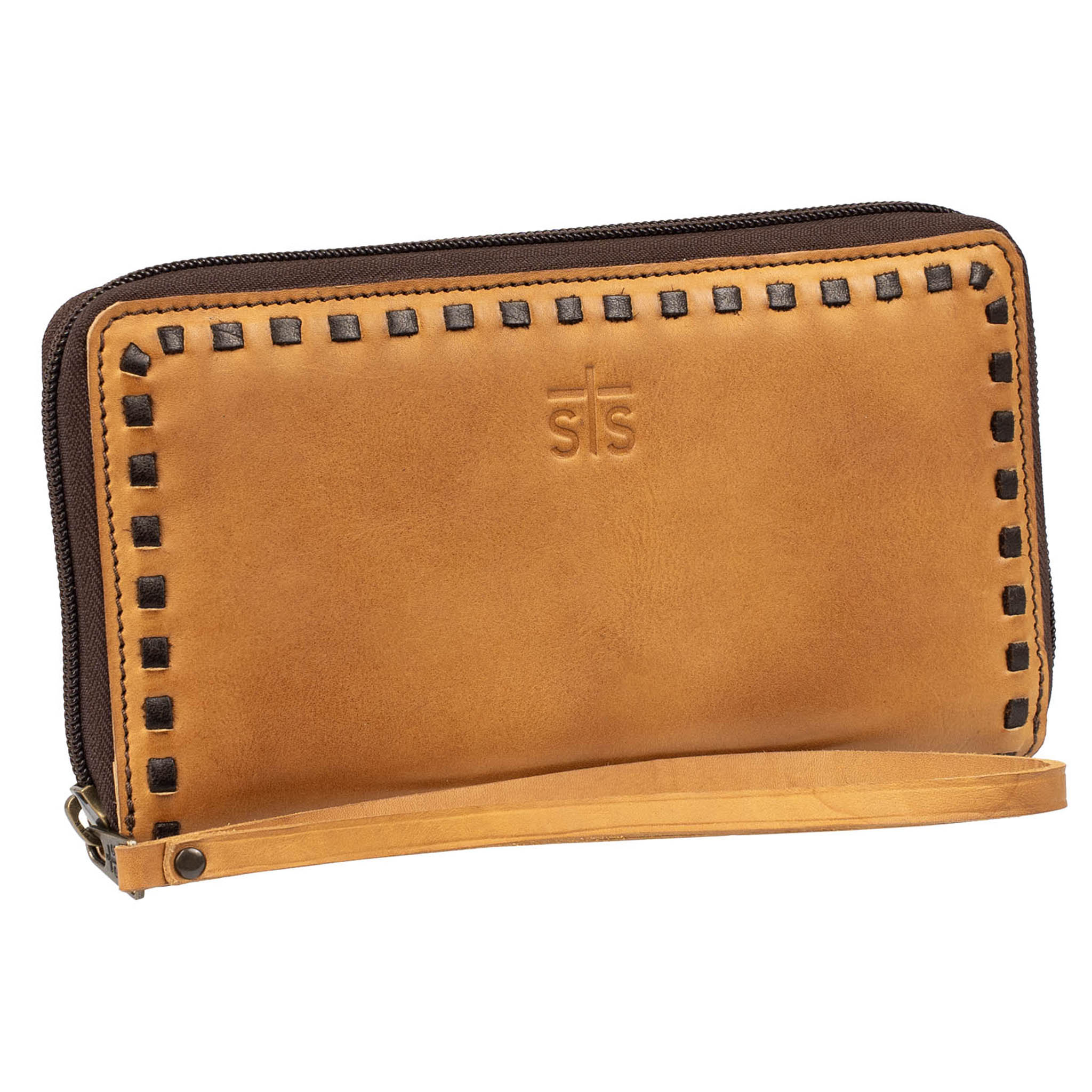 When only the necessities are needed, the Bandera Tan Berkley Bifold Wallet is the perfect choice. This wallet fully opens to reveal 16 interior card slots. Yes. 16. This petite wallet makes organization easy! Top it all off with a wristlet strap and STS branded leather, you’re good to go.