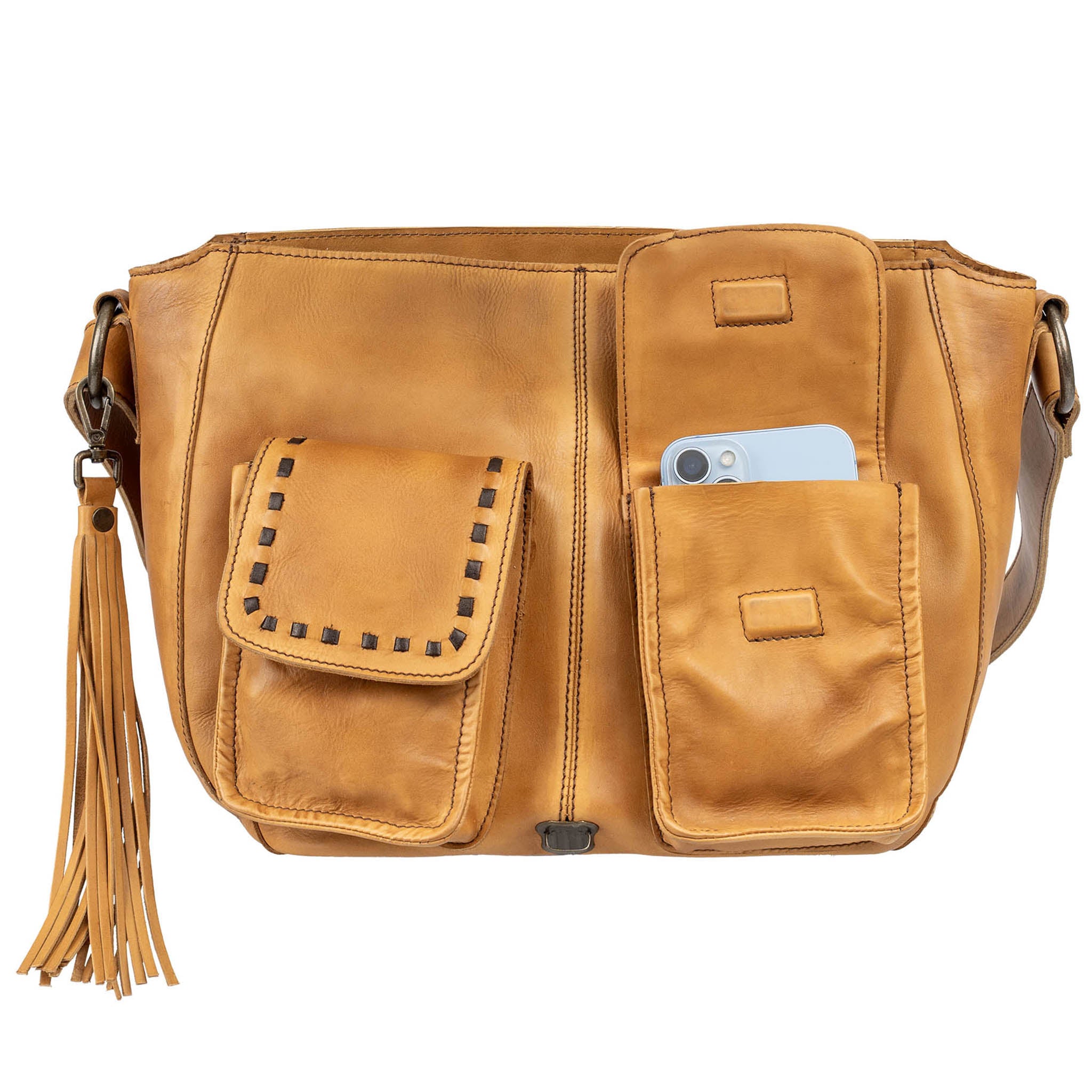 Our Bandera Tan Saddle Hobo Bag moves with you, adding the fun in functionality. The top flap closure offers the aesthetic of a buckle closure without the time commitment. This beautiful neutral bag is the perfect spring addition.