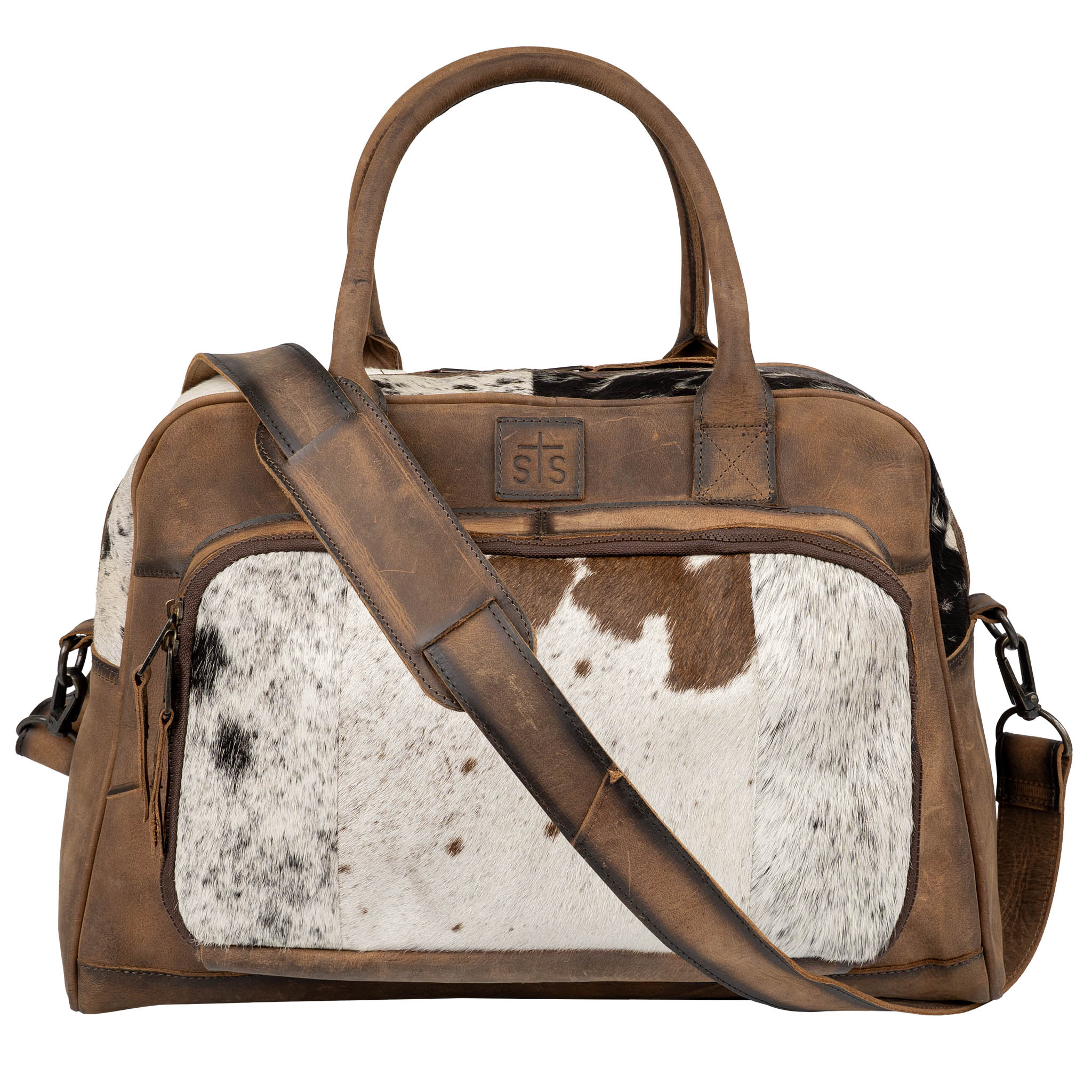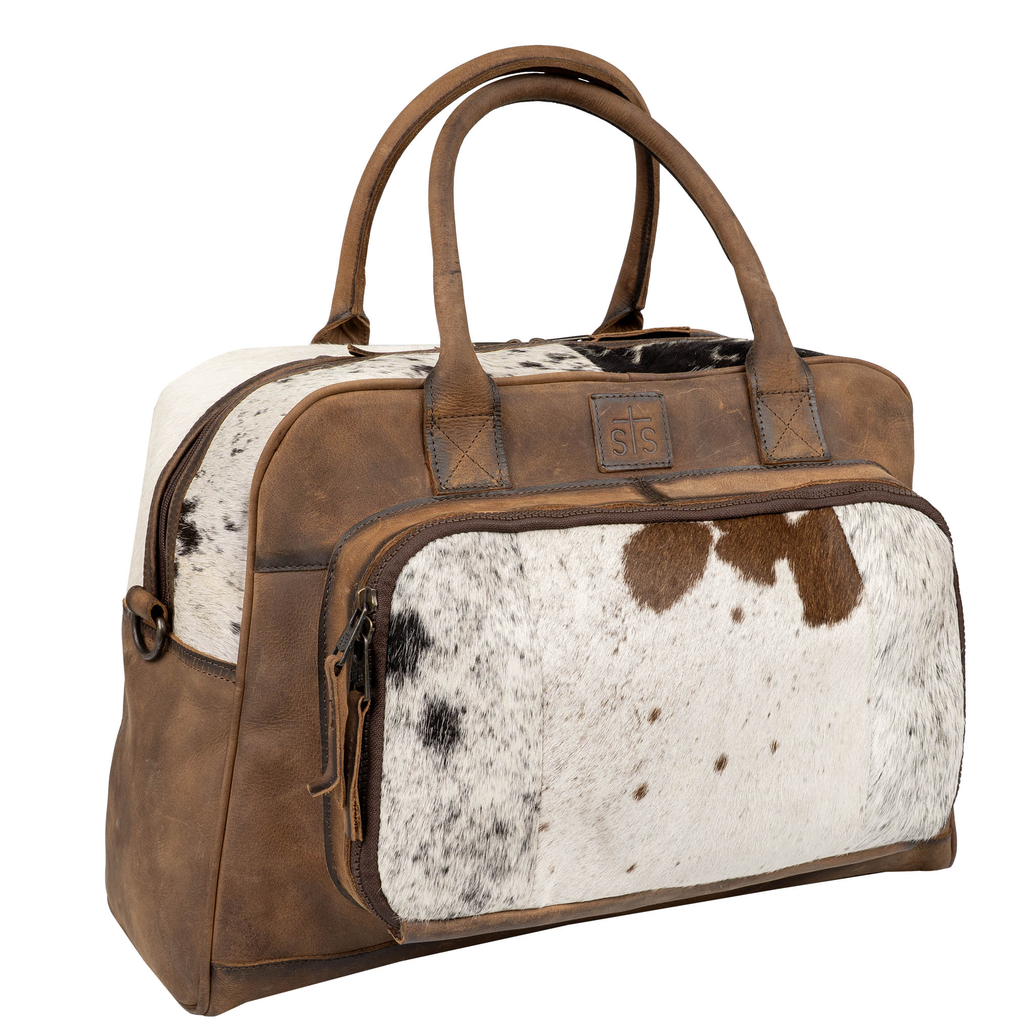 The Cowhide Carry-On features genuine cowhide and full grain leather accents buffed for a natural feel.