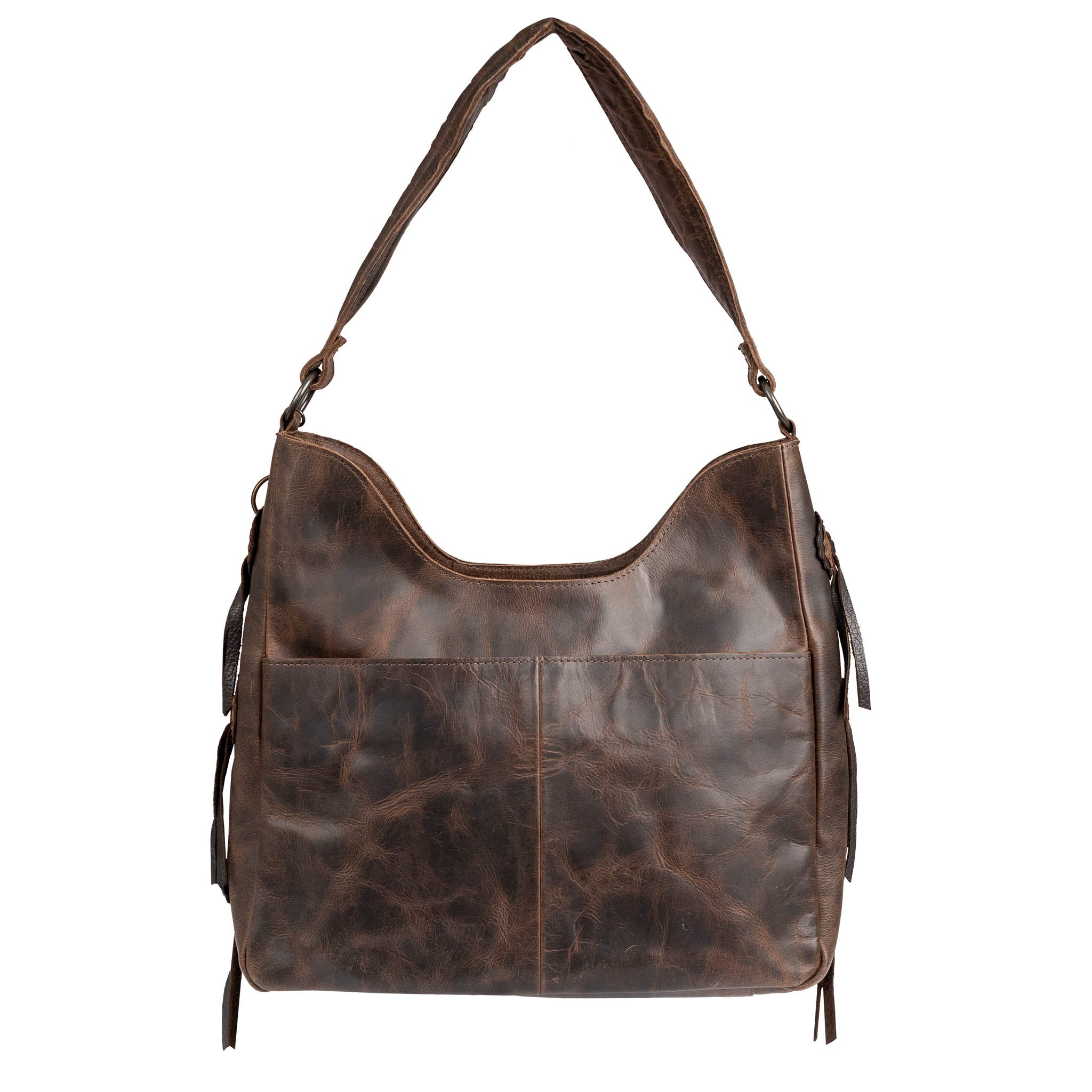 The Guadalupe Serape Hobo Bag captures the essence of fall with its rich palette of browns, creams, grays and black colors and is crafted from hand-woven cotton with full grain leather accents for a timeless rustic charm.