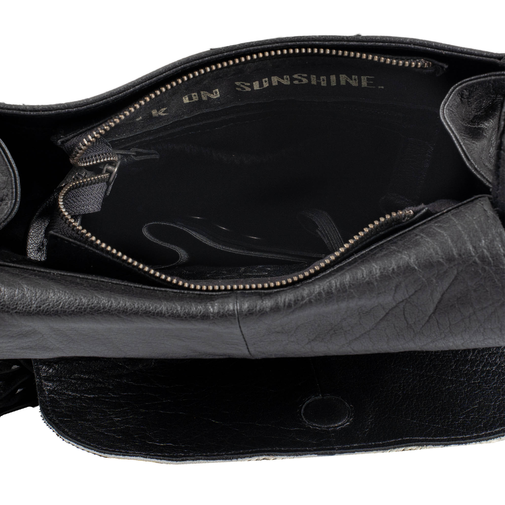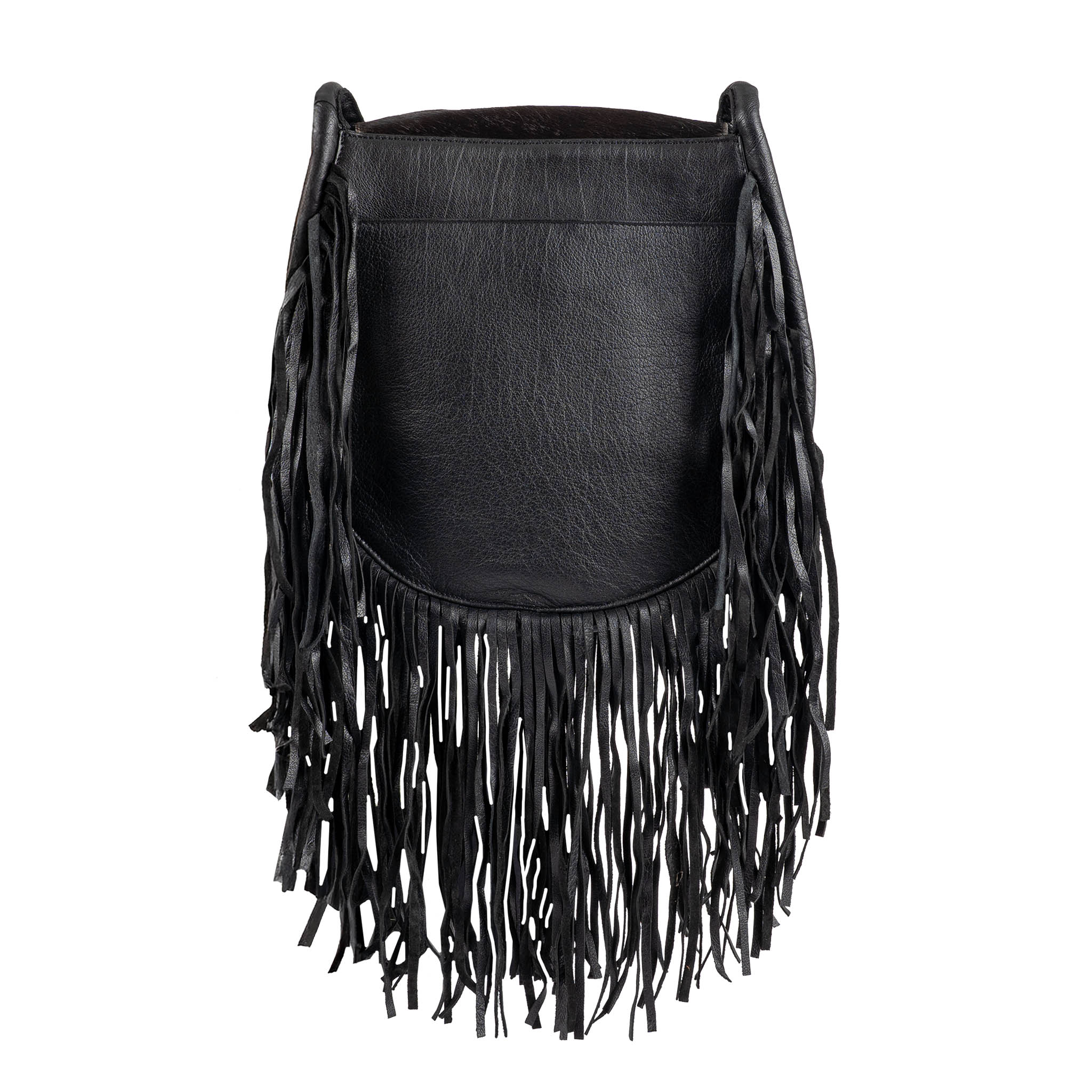 Defined by its natural beauty, the Indie Cowhide Saddle Bag features buffalo leather that is milled to preserve the natural pebble pattern of the leather with hair on hide accents for a touch of western flair.
