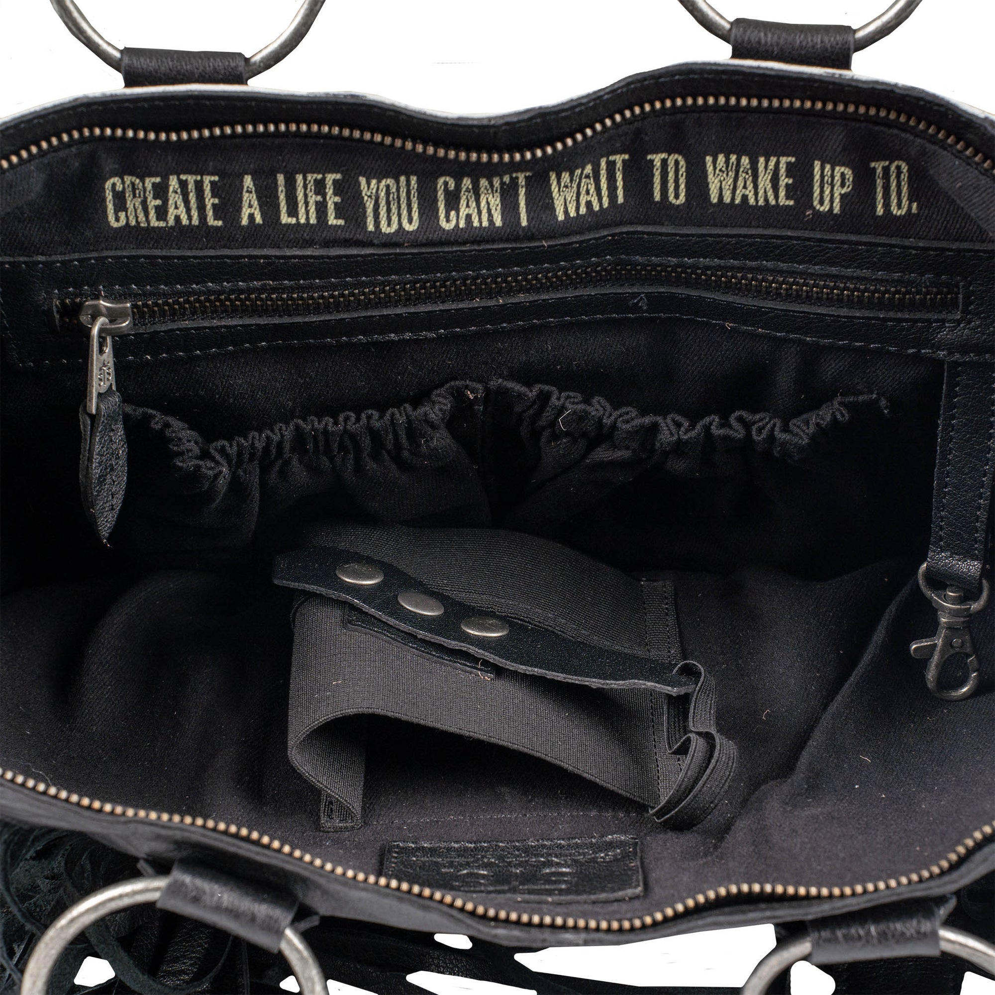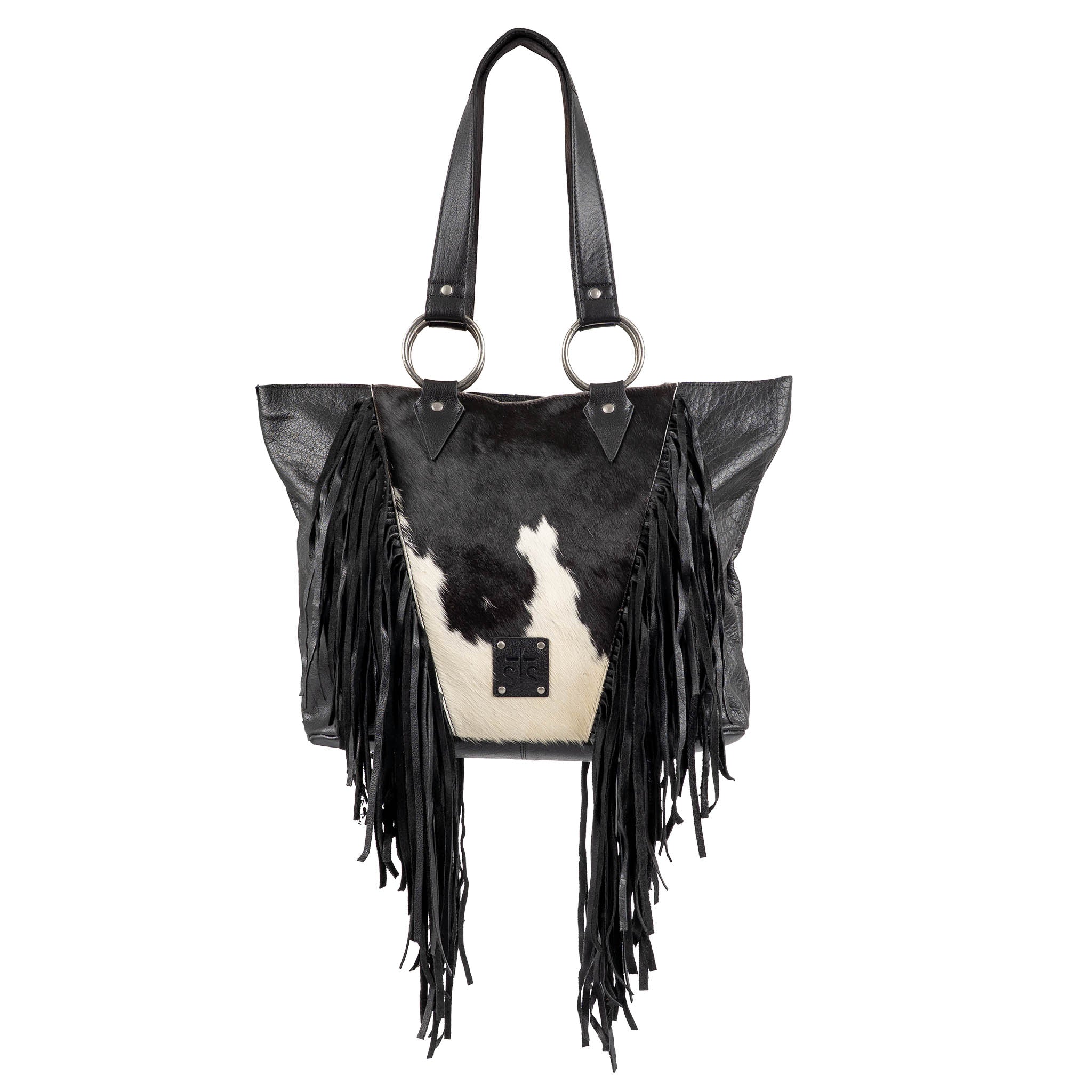 Defined by its natural beauty, the Indie Cowhide Tote features buffalo leather that is milled to preserve the natural pebble pattern of the leather with hair on hide accents for a touch of western flair.